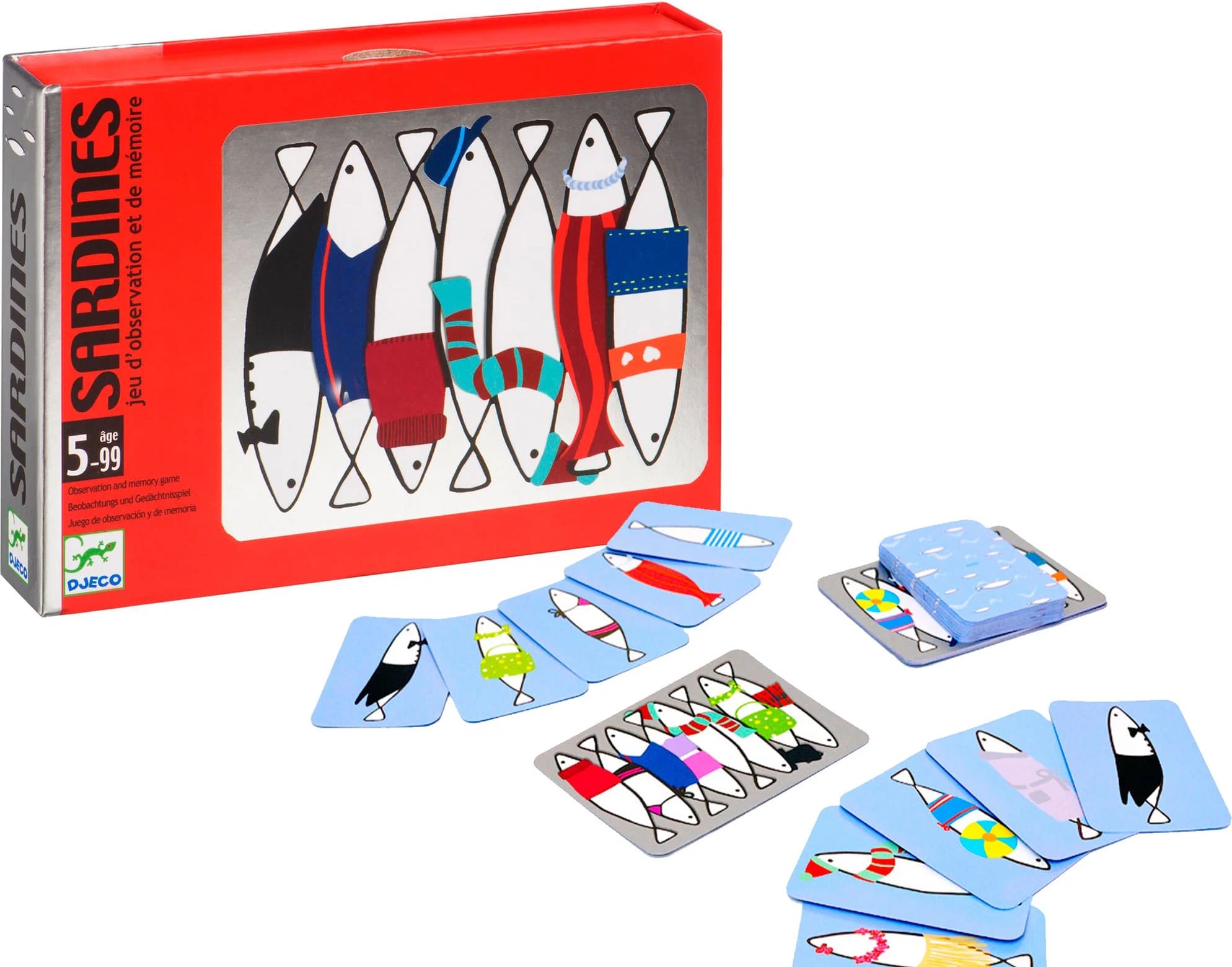 Игроки получают по 5 карт сардины рубашкой вверх не смотря карты, переворачивают на несколько секунд одну большую карту консервная банка и пытаются запомнить все изображённые на ней сардины. Потом смотрят свои карты и выкладывают свои сардины аналогичным в консервной банке.
