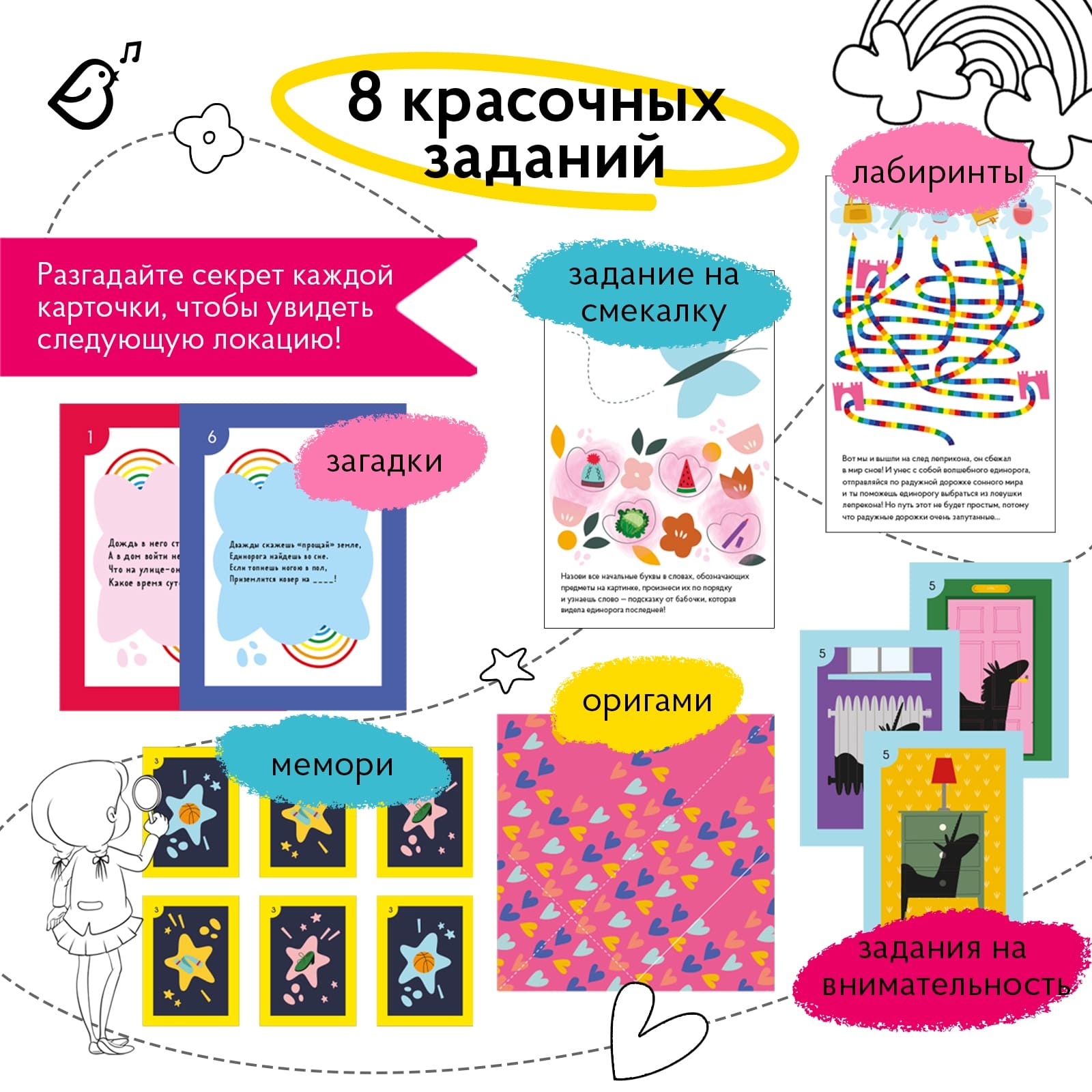 В квесте 7 конвертов с заданиями, которые нужно разложить по дому согласно инструкции – в ней же есть все ответы на загадки, чтобы сориентировать детей, если они пойдут по «ложном следу».