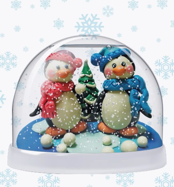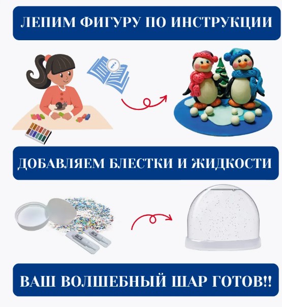 Сначала слепим из пластилина фигурки, следуя простой пошаговой инструкции. Используйте доску для лепки и схему смешивания цветов. Далее закрепляем готовую композицию на подставке магического шара, добавляем в сферу воду, блестки и специальные жидкости. Волшебный водяной шар готов!