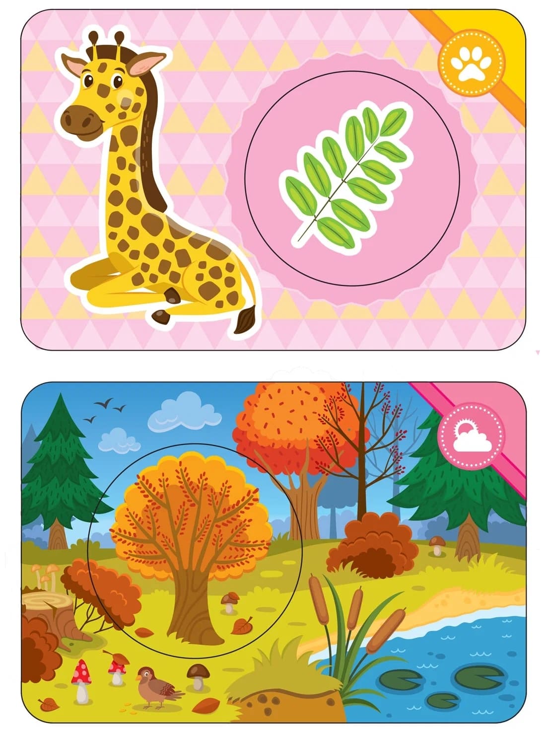 Особая форма сортеров - прямоугольных пазлов с круглой вырубленной деталью посередине позволяет разнообразить игру, развивает способность малыша соотносить часть и целое, улучшает концентрацию внимания и тренирует мелкую моторику. Скругленные углы и плотный картон делают пазлы абсолютно безопасными для малыша.