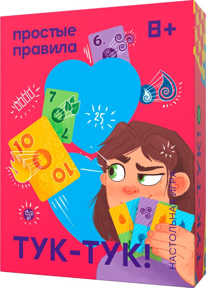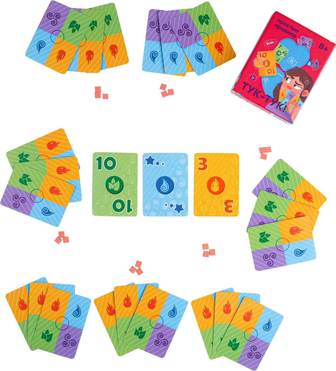 Меняйтесь картами, собирайте стихии и складывайте числа. Ваша цель — 25 очков. Услышали «тук-тук!» — пошёл последний круг.