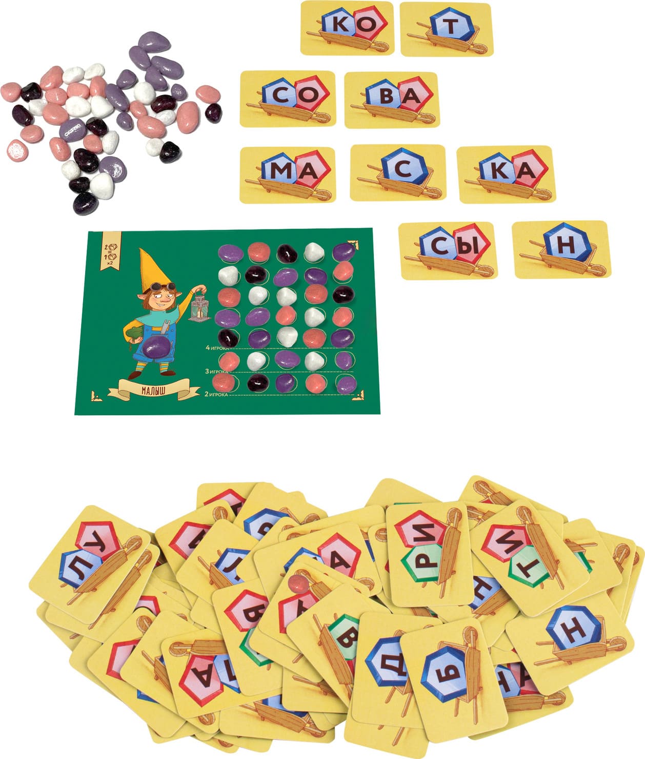 Выбирайте героя, придумывайте слова из букв и слогов, получайте сокровища. 3 уровня сложности игры.