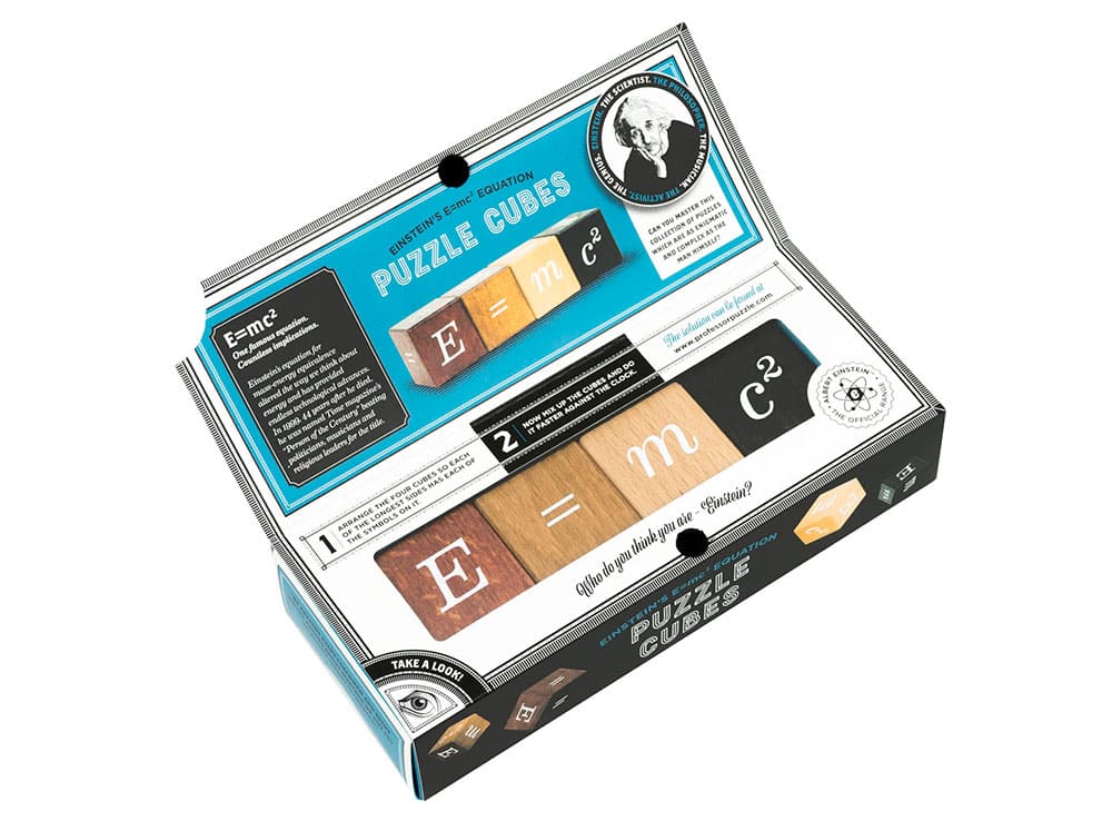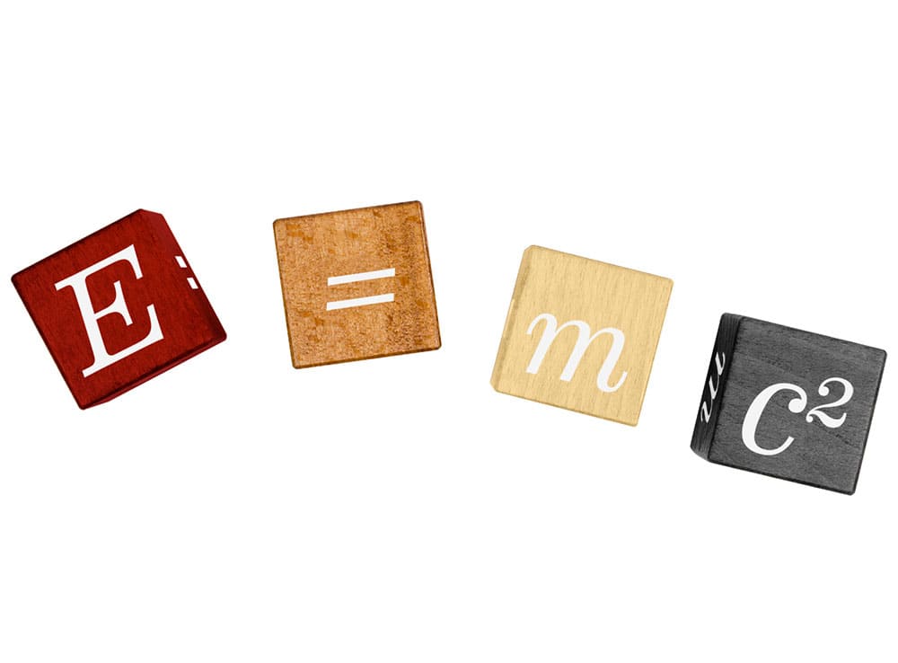 Попробуйте расположить кубики так, чтобы каждая из четырех сторон показывала все пять символов, составляющих уравнение Эйнштейна.