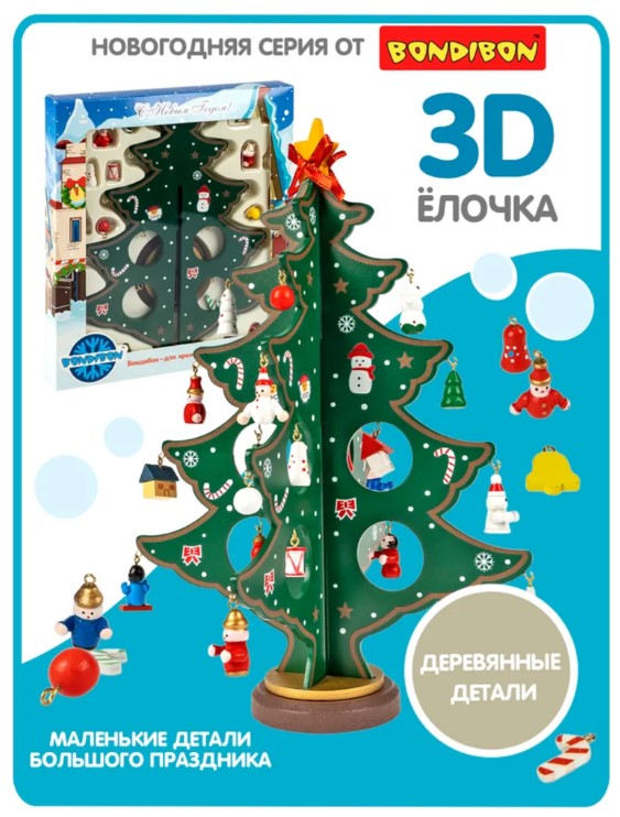 ЕЛОЧКА 3D от Бондибон, выполненная из качественных экологичных материалов – оригинальный подарок к Новому году для мамы, папы, бабушки и дедушки.