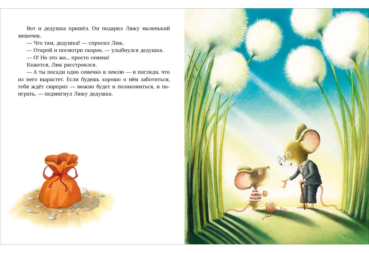 Мышонок Люк получил на день рождения необычный подарок. Дедушка подарил ему мешочек семян. Люку пришлось набраться терпения, чтобы вырастить из семечка маленький росточек, но в итоге его труды оказались вознаграждены!