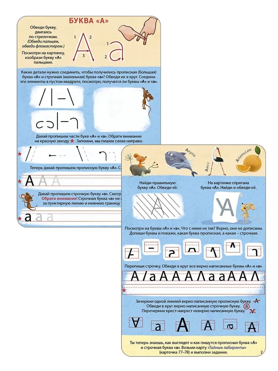 • Каждая карточка – это и комплекс упражнений, направленный на изучение и закрепление одной буквы.